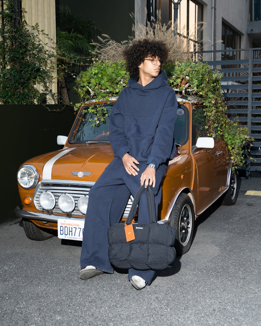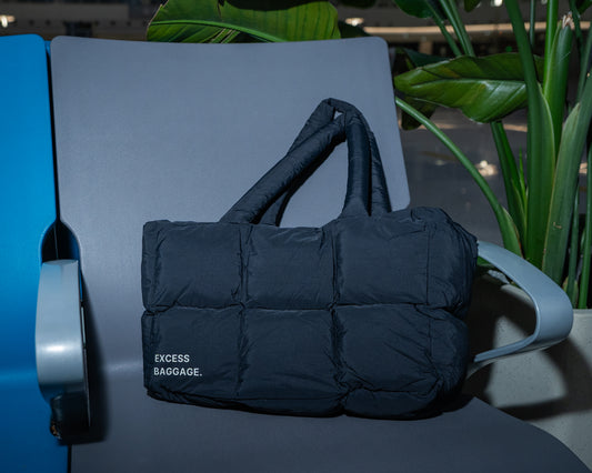 Stay cozy with the 'Jetlag' hoodie, 'Explorer' sweatshirt, and 'Out of Office' sweatpants. Travel smart with the 'Frequent Flyer' carry-on, 'Baggage Claim' tag, and 'Excess Baggage' tote—perfect for trips or relaxing at home!
